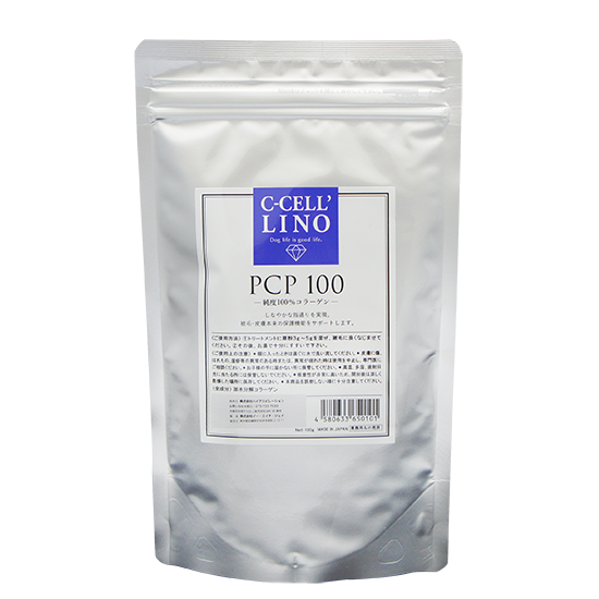 添加剤としてトリートメントに混ぜたり、お湯にPCP100を10g溶かしてコラーゲン入浴、トリートメントにPCP100を3g添加して使用することで、被毛の水分量を整え、しなやかさとうるおいある仕上がりに。